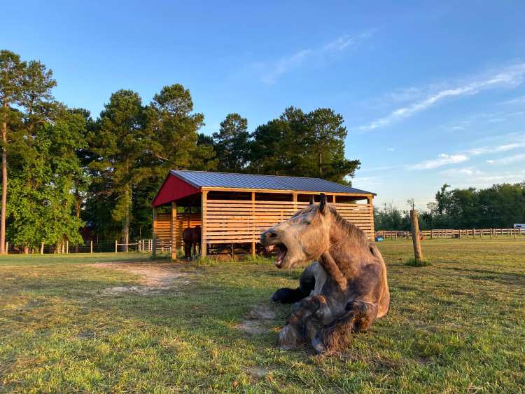 It’s been roughly six months since Earl’s accident, and miraculously he’s still with us! What’s more, he’s survived to see the birth of his daughter, LowCountry Acres Opal, who was born April 12, 2022. Amazingly, Opal was born the same day as Earl’s one and only other filly, Pearl!