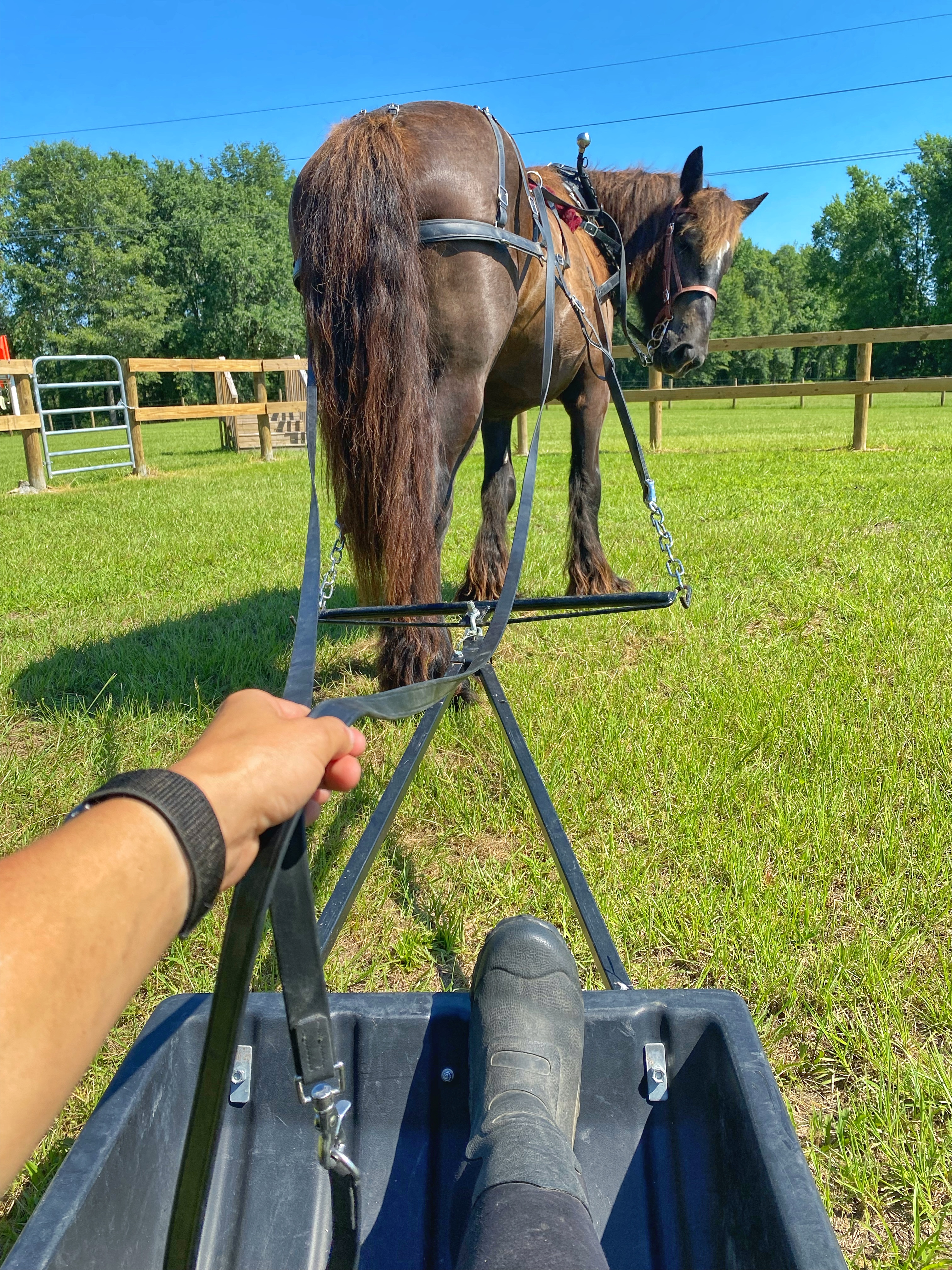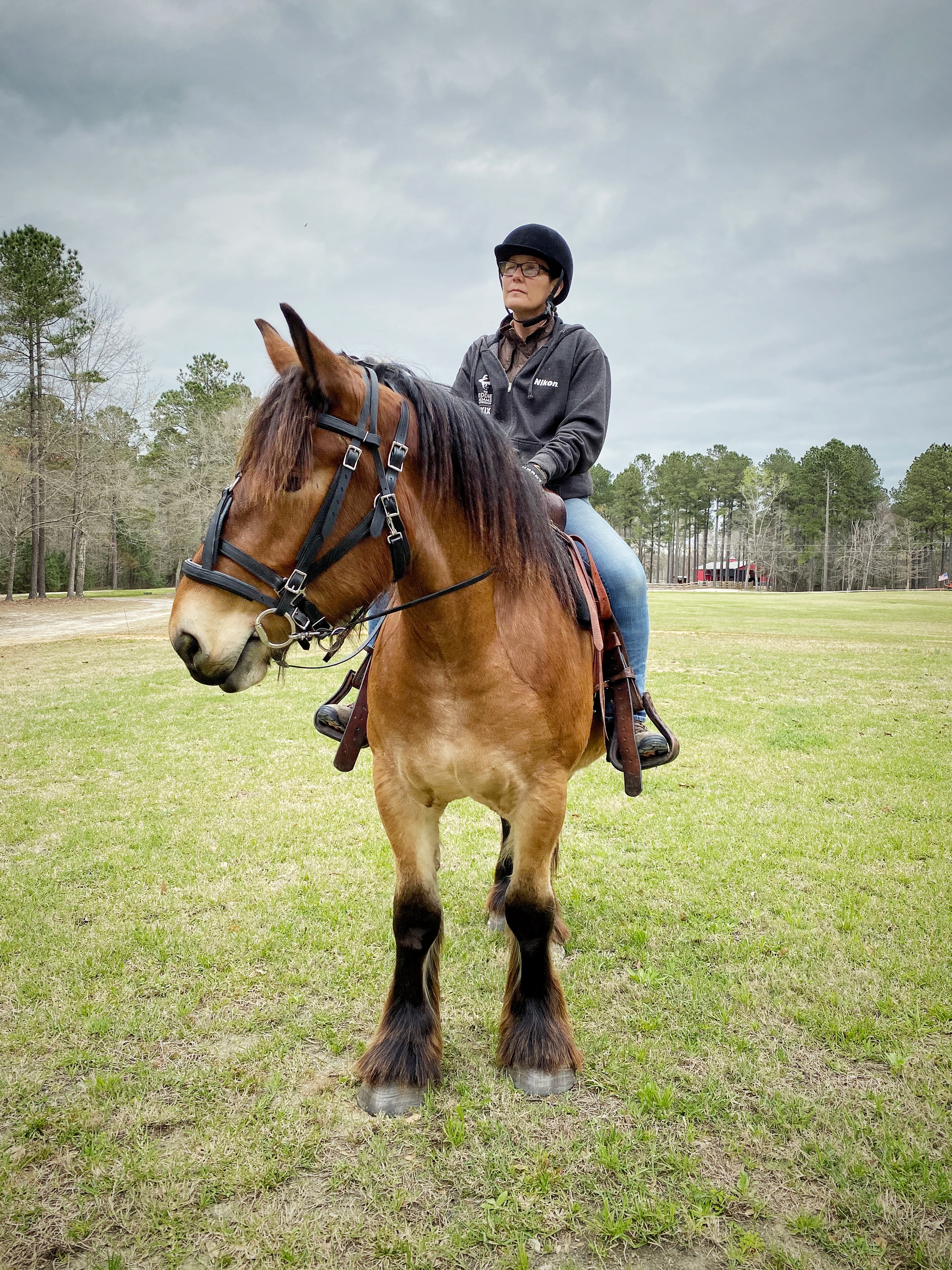 This stage is best for horses who are at least three (3) years old. The focus of this stage is on exposure, experience and responsiveness. For the horse to pass this training stage they must have a minimum of 50 safe riding/driving miles in a variety of environments and consistently demonstrate safe behavior. Training at this level includes walk-off, turning both directions, stopping, backing, traveling while under saddle with a rider and/or while harnessed/hitched to a vehicle. This stage focuses on improving the horse’s responsiveness to the rider’s hand, leg and voice cues, as well as, developing vertical and lateral flexion while under saddle. Practicing smoother and quicker transitions through the gaits (walk, trot and some canter), and reducing fear reactions while being ridden or handled. Horses at this level should approach new situations willingly when encouraged by the rider/driver. While in harness, this stage improves the horse’s responsiveness to voice commands such as gee and haw for example. In general, at the completion of this stage the horse is suitable for an experienced or intermediate rider or driver capable of continuing the horse’s training and development.