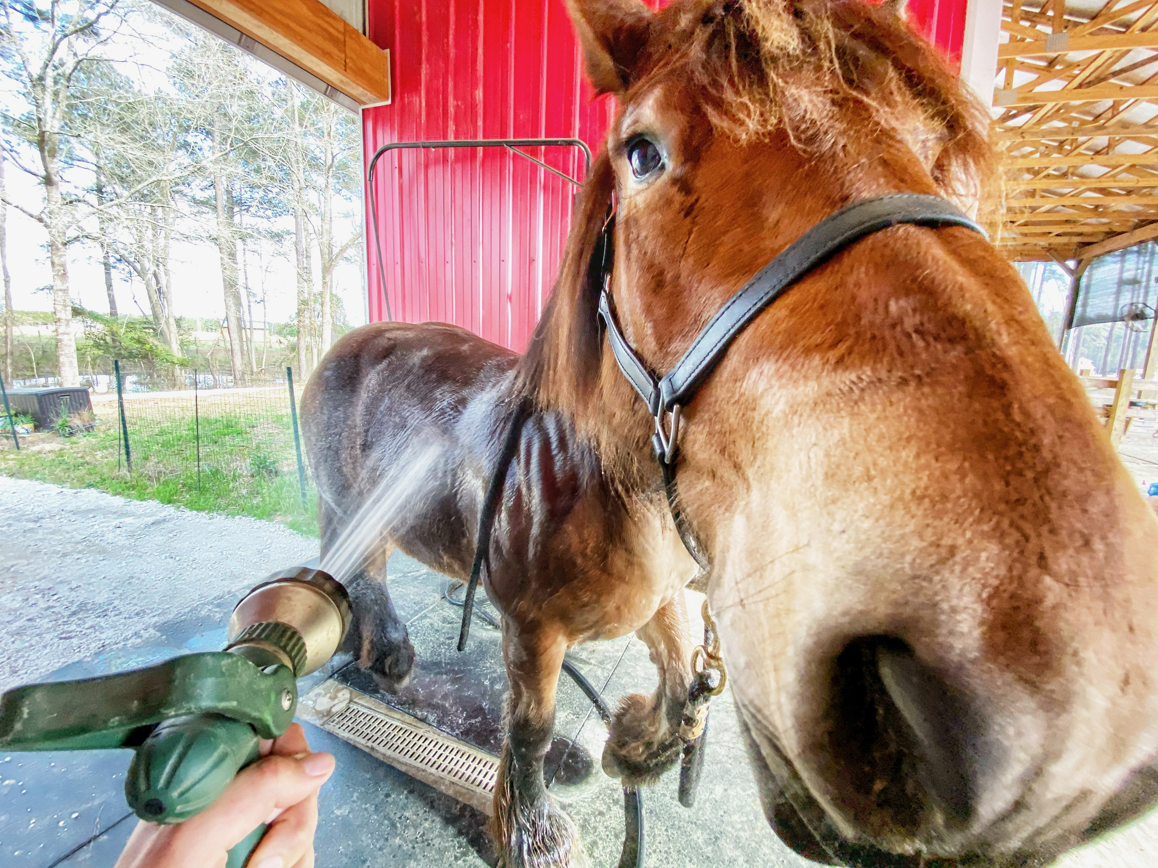 Through +R, I teach ground manners for easy handling, skills to improve animal husbandry tasks, trailer loading, grooming, hoof care, oral worming, liberty, obstacles and more. Training also includes practicing catching, leading and tying skills, deworming, hoof trimming, they spend time in box stalls and tie posts and learn to relax out of the herd setting. This training allows the horse to incorporate human contact as a natural part of the life and allows us the opportunity to get to know them.